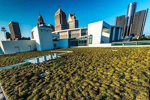 FIG. 6: Green Roof on the Huntington Place18Huntington Place, “Cobo Center grows two more shades of green in 2018.” 28 November 2017. https://www.huntingtonplacedetroit.com/blog/detail/cobo-center-ups-the-sustainability-ante-for-2018 - La Fábrica, Spain: La Fábrica was once an abandoned factory in San Justo Desvern, and now it is the head office of Taller de Arquitectura and the home of Ricardo Bofill – the architect who designed it. The factory was originally built in 1973 and has since been renovated. He kept a lot of the old factory parts but filled the place with plants and gardens. Now, it’s like a green oasis in the middle of a city! It’s a great example of turning an old, industrial place into something beautiful and alive 19Bofill taller de arquitectura. “La Fàbrica”. 2025. https://ricardobofill.com/la-fabrica/read/ 20Danny Hudson, “La Fabrica – Ricardo Bofill’s Time Capsule Factory Renovation”. February 26, 2017. Design Boom. https://www.designboom.com/architecture/ricardo-bofill-la-fabrica-barcelona-spain-02-25-2017/.